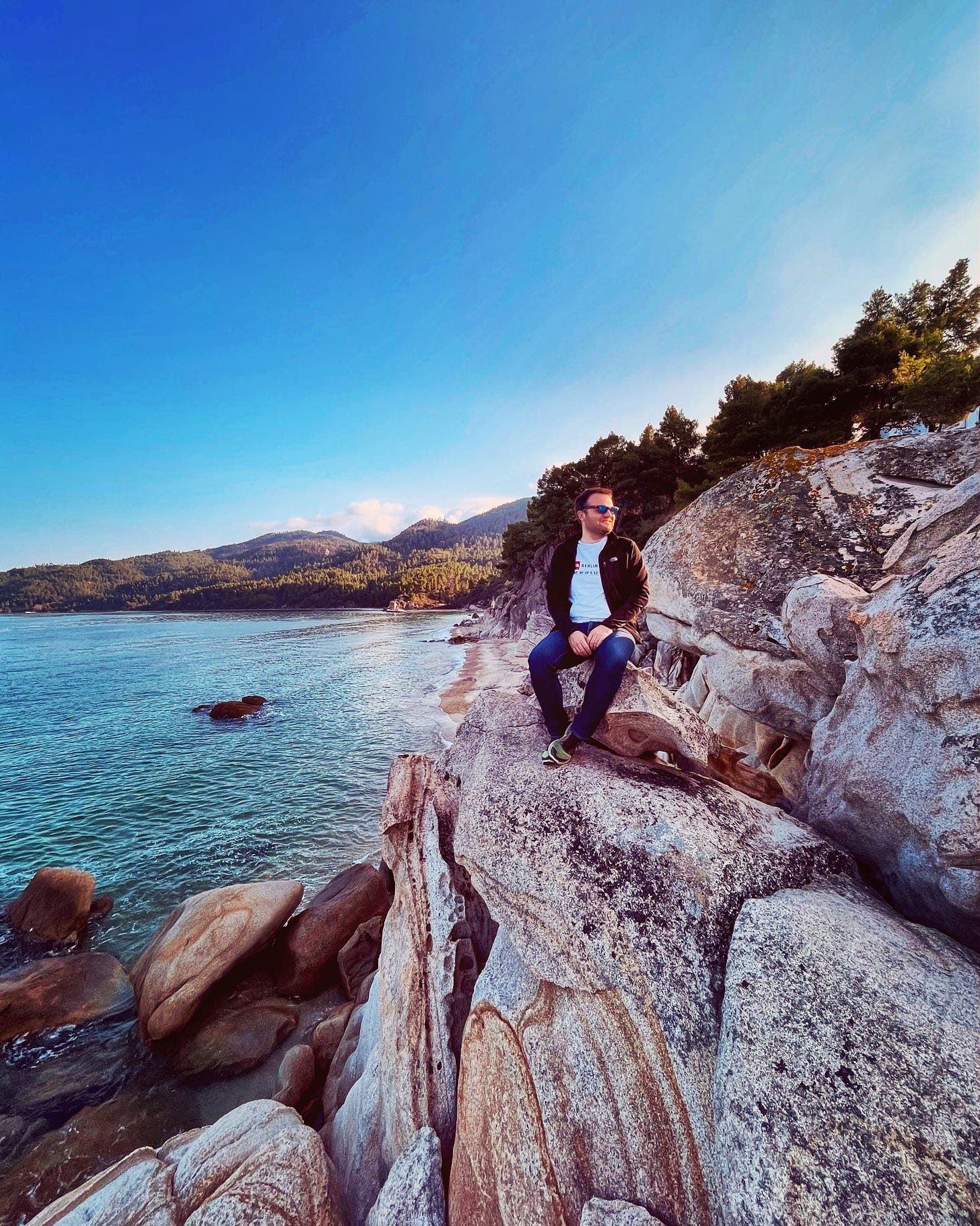 To me personally, Sithonia is extra-special, as it reminds me a lot of other places that I love. Its hills and cliffs, covered with Mediterranean pine forests, in combination with the very tranquil Aegean waters in the countless bays and inlets, can make you think youβre on a lake on a smooth summer evening in Sweden or Alaska. The more open sea views, with cliffs and stony beaches overlooking a vast expanse of blue, could be straight out of Big Sur in California.